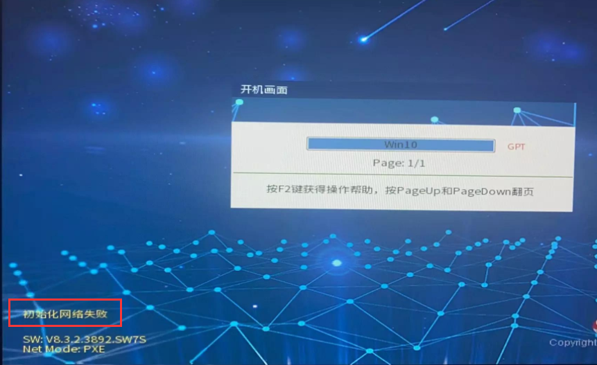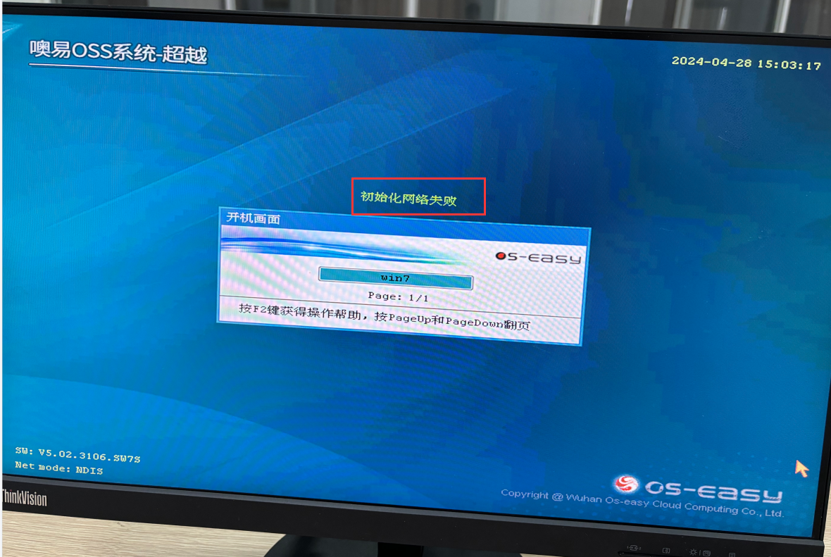 6)、接收端底层提示初始化网络失败导致连不上发送端:若接收端OSS底层选单界面提示初始化网络失败了,肯定会连不上发送端,需解决初始化失败的问题。现象如下两图: