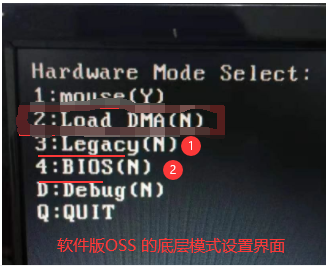 ⑤、OSS V4/V5 开机按CTRL H或insert 进入底层模式设置界面,legacy 和BIOS必须是N,如下图: