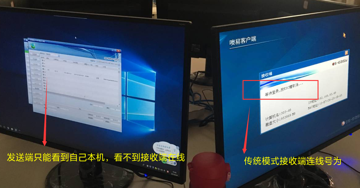 问题现象描述:发送端点了等待登录,接收端开机或重启后,连不上发送端,直接进系统了或停留在OSS底层选单界面。
