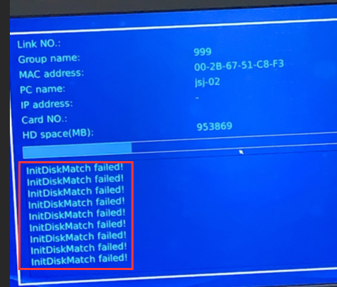 3、个别接收端提示“InitDiskMatch failed”即硬盘匹配失败