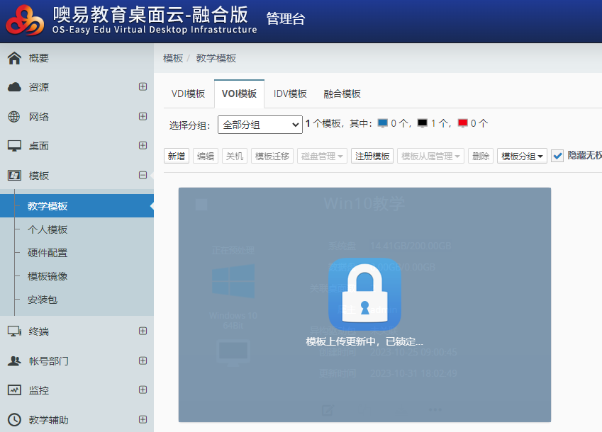 8、等模板更新完成后即可下发桌面给教室里的终端学生机。