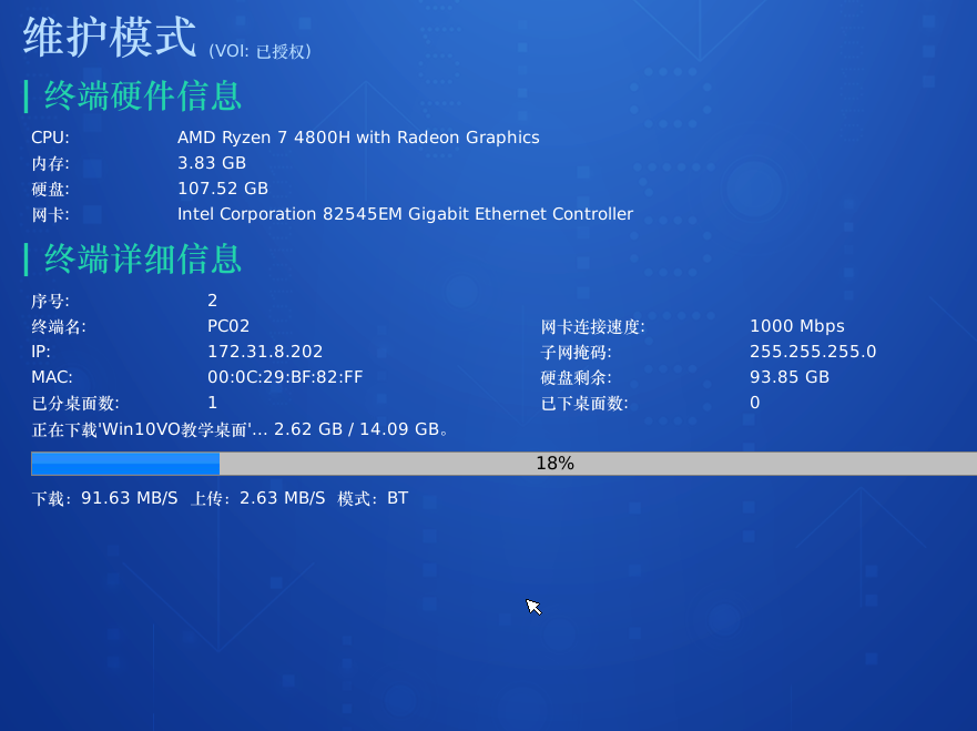 4、终端那边维护模式会显示下载桌面的进度条和下载速度,等下发完成后重启终端即可完成。