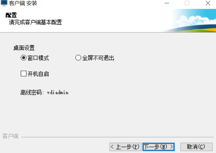 3、按照如图所示,出现客户端配置界面,选择默认模式“窗口模式”即可。