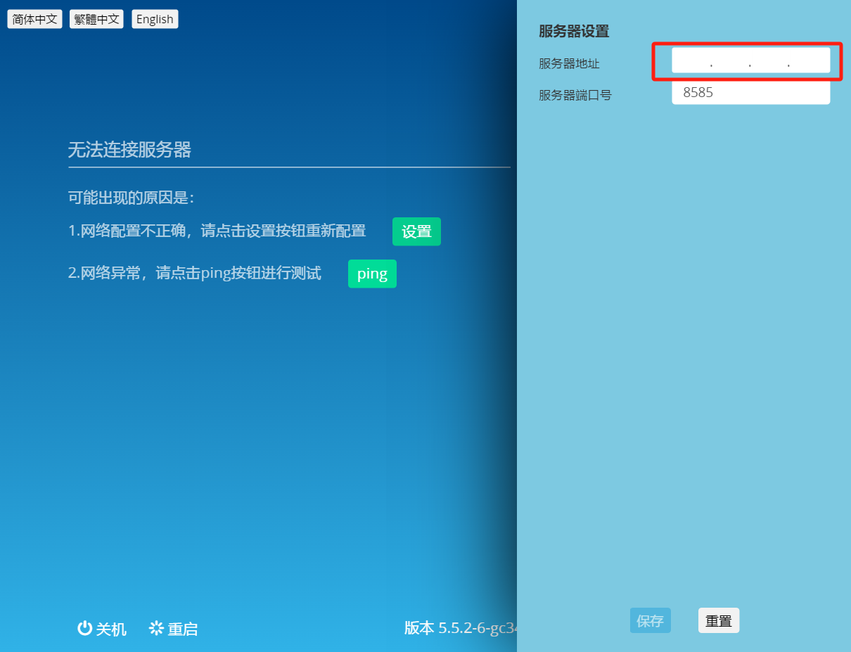 7、双击点击图标,打开客户端,点击设置,填入服务器的IP,点击保存,Windows客户端本地网络获取的是当前Windows系统环境的网卡IP地址,要确保当前的Windows系统网络与服务器网络是互通的。