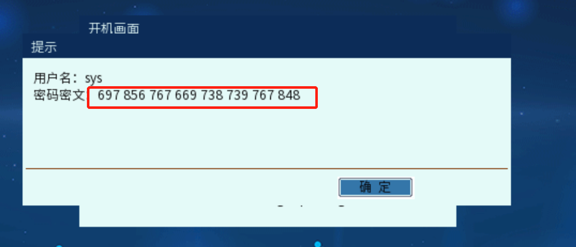若密码未做过更改,OSS默认用户名为sys,默认密码为空(密码栏不输入即可),输入后若提示密码错误,请按下面步骤来操作: 1.机器开机后,请在保护卡开机选单界面按F3,会出现提示框显示用户名和密码密文。