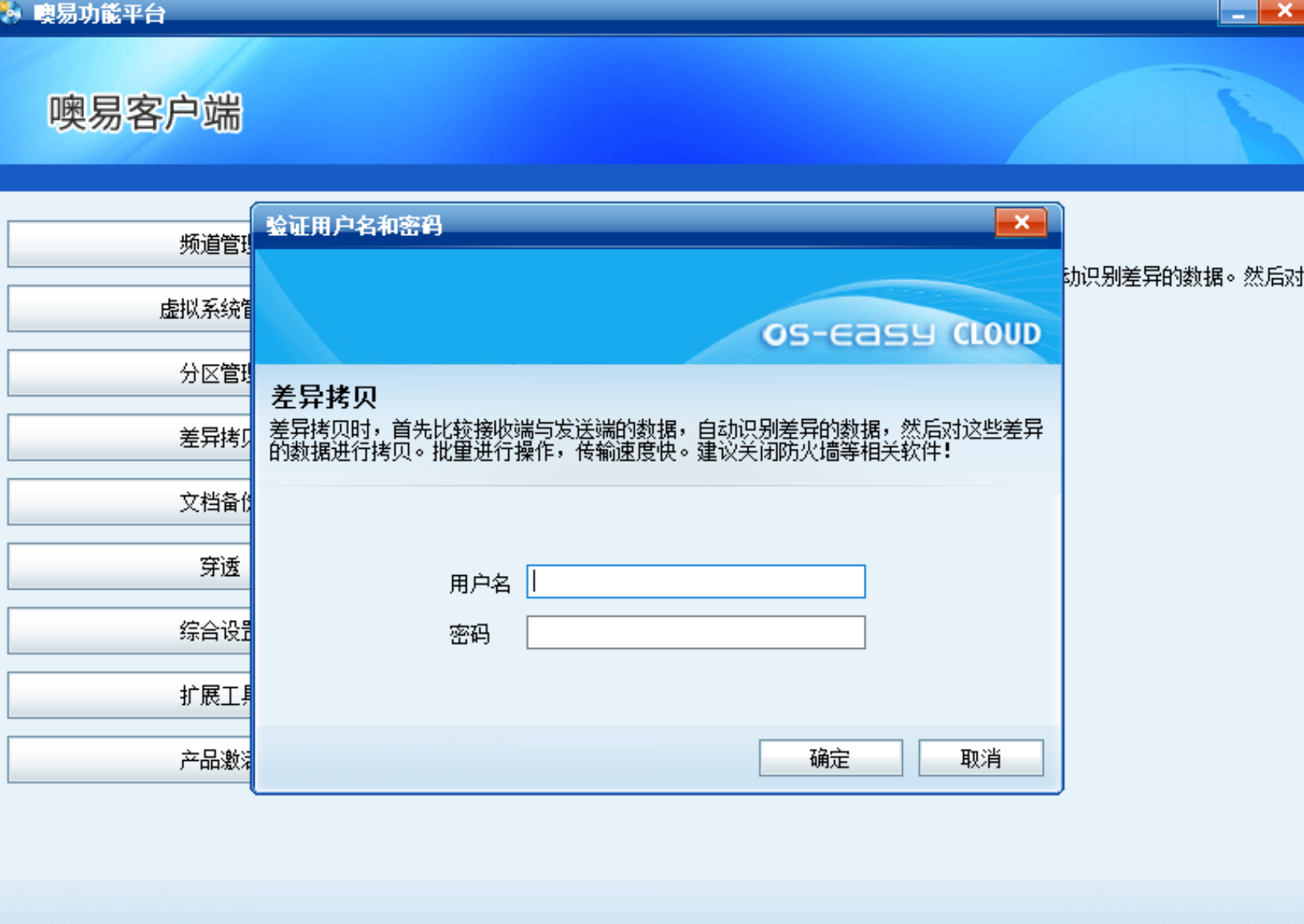 2.在系统中打开OSS上层客户端,使用各项功能,需验证用户名和密码时忘记密码