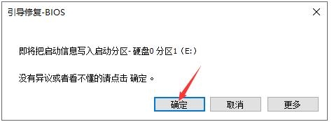点确定后,会提示修复引导,会自动识别当前机器分区格式来修复,直接点确定就行.