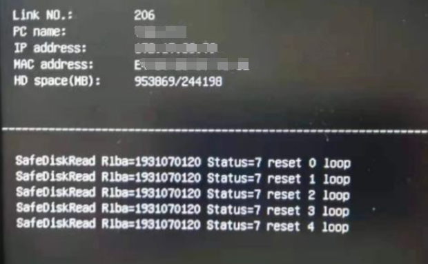 如果出现类似Disk read提示的报错,都是由于磁盘部分位置读写失败导致,可以尝试先把磁盘扇区低格,然后重装底层客户端同传测试,如果低格了还是有问题,需要检测是否为硬件问题.