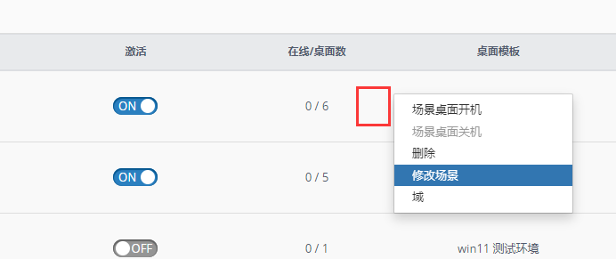2、右键点击场景空白处,选择修改场景,注意桌面全部是关机状态才可以点击修改场景