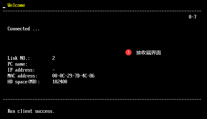 ⑤等待接收端连上发送端后,界面如下: