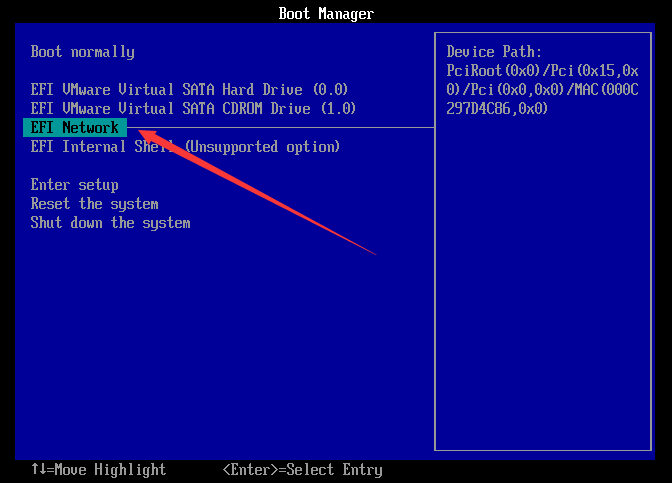 ④ 到要执行网络安装的机器上,开机并进入到BIOS快速引导菜单中,选择带有“UEFI”标志的网卡启动