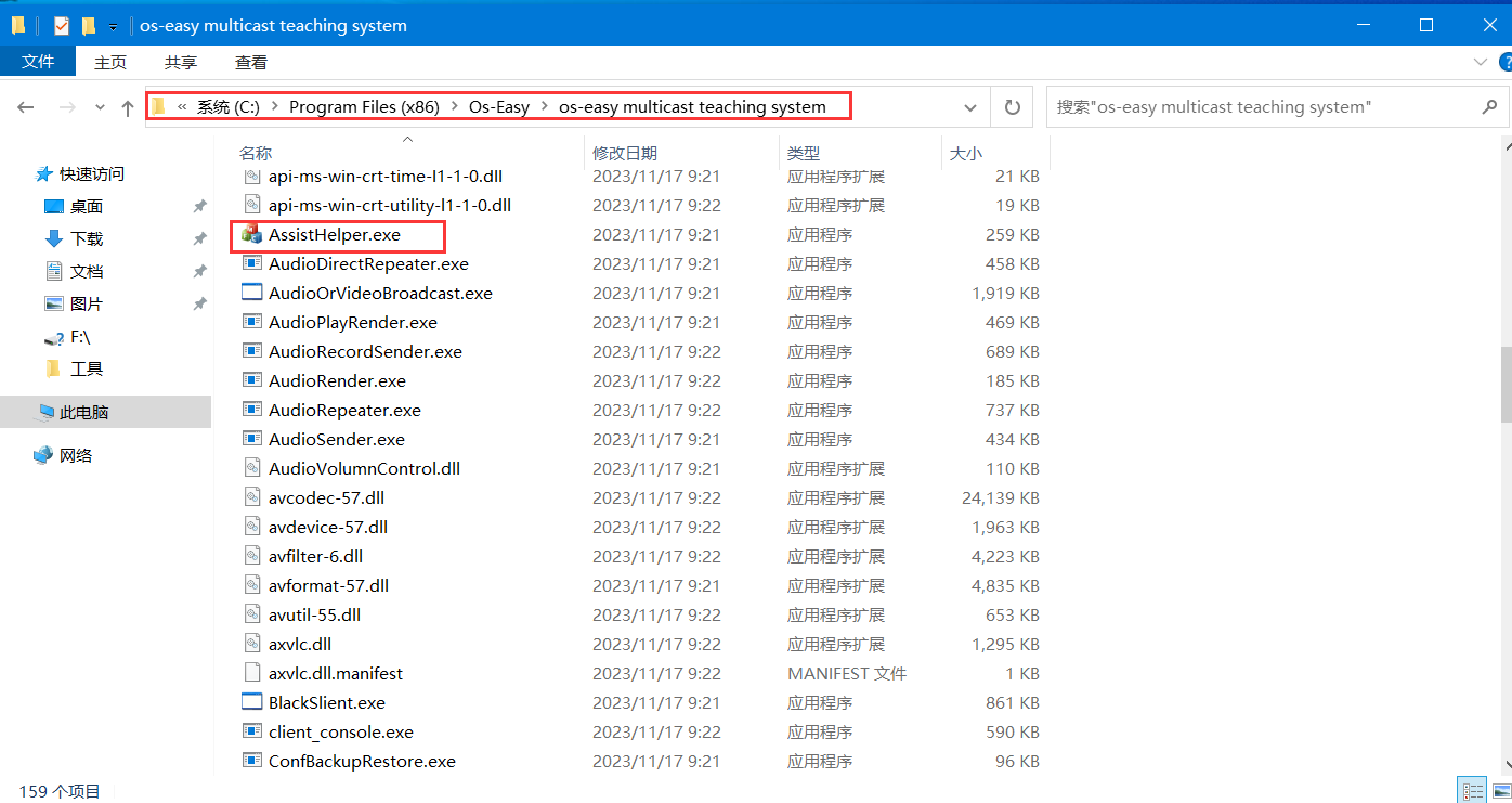 5.在安装目录下C:Program Files (x86)Os-Easyos-easy multicast teaching system双击AssisHelper.exe打开多媒体配置工具;
