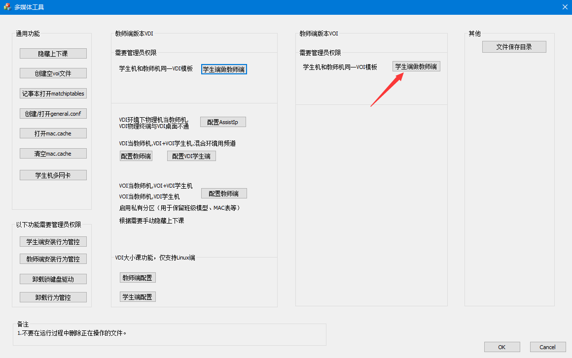 6.把多媒体工具放到多媒体安装目录下,右键管理员运行,在教师端版本VOI下,点击“学生端做教师端”;