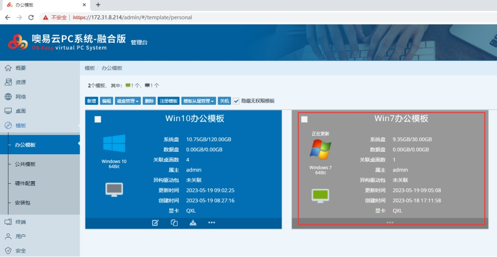 2、更新模板触发后,该模板虚拟机会自动关机,并更新模板,请等待更新完成后,在激活对应的公共桌面场景。