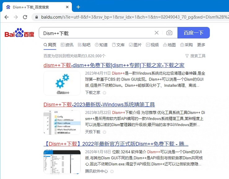 百度搜索Dism 下载,下载一个Dism 工具软件;