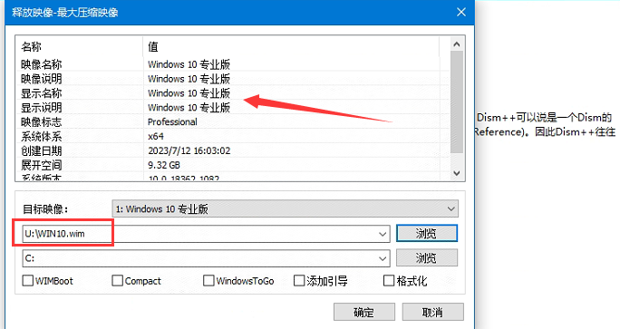 7.验证系统完整性,利用Dism 软件打开恢复功能,系统还原选项;浏览打开备份的WIN10.wim文件,可以看到识别系统为Windows 10专业版;
