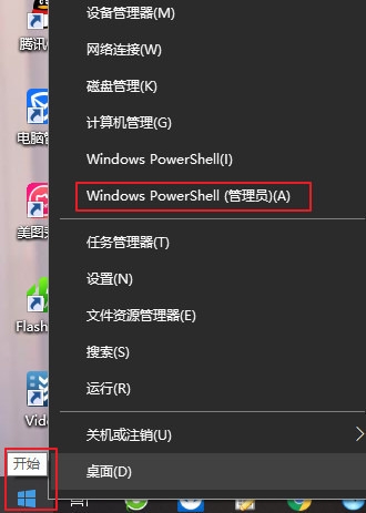 1.鼠标右击电脑左下角图标选择【Windows PowerSell(管理员)A】