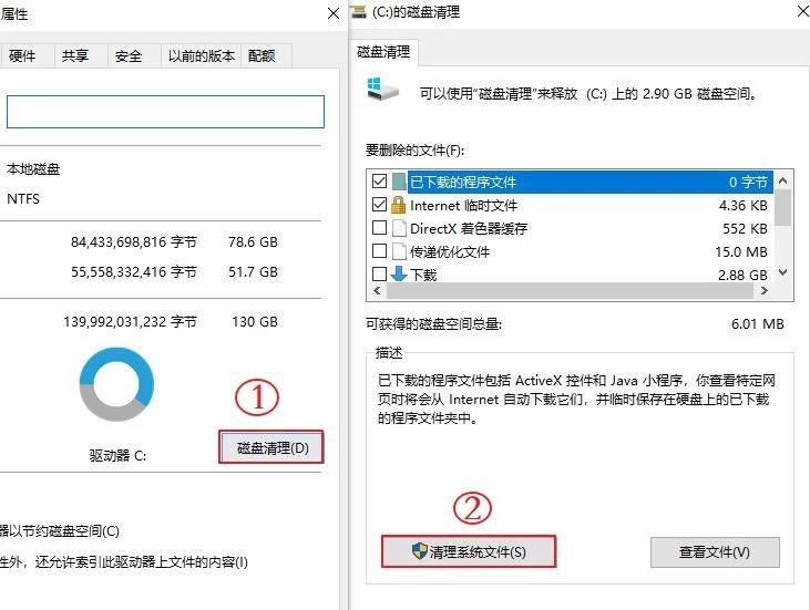 2.点击【磁盘清理】,点击【清理系统文件】。