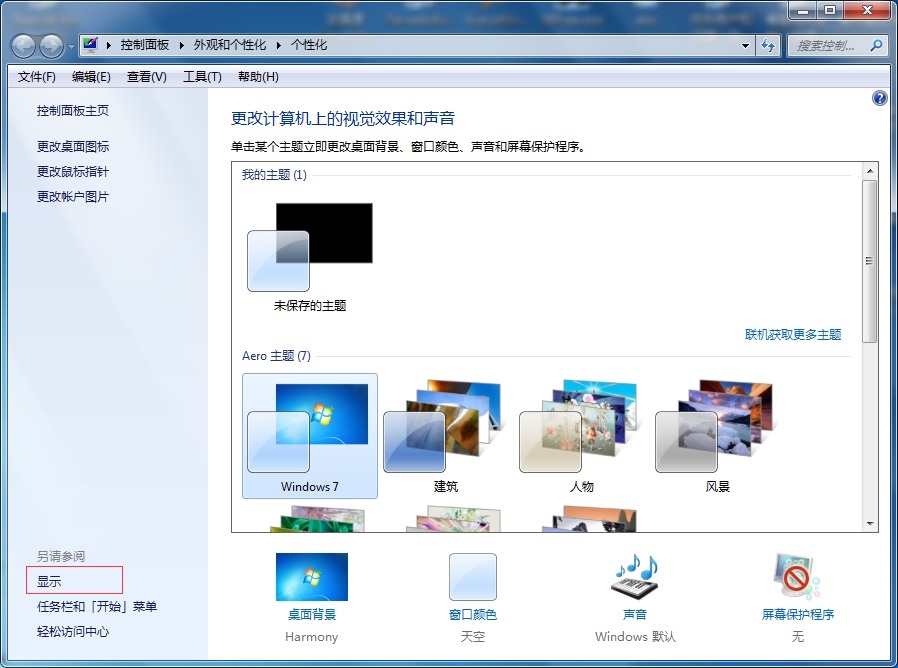 鼠标右键点击后选择个性化,再选择显示,即可看到缩放比例,如下图所示
