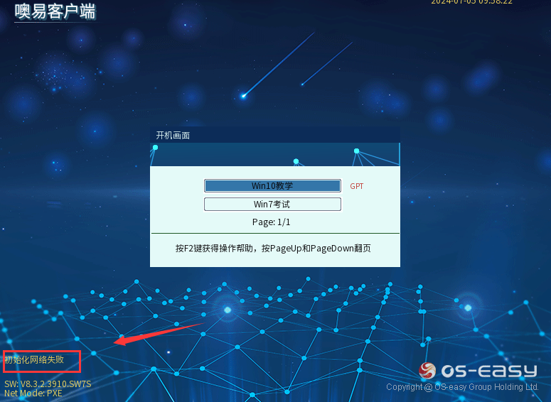 初始化失败 | OSS选单界面提示网络初始化失败