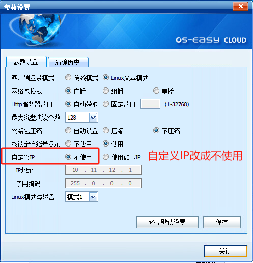 1) 差异拷贝,参数设置,自定义IP ,不勾选10.11.12.1这个IP地址,改成不使用,如下图: