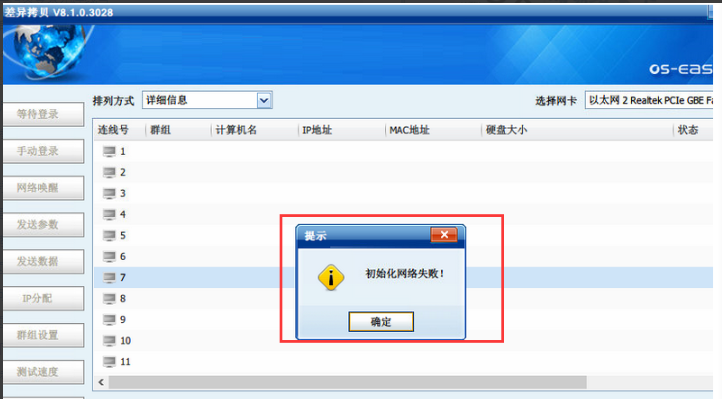 打开上层差异拷贝 点等待登录 "提示初始化网络失败"