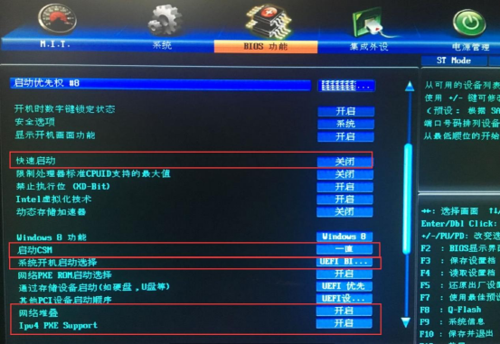 ①机器主板本身要支持uefi-ipv4 PXE网络堆栈,并且开启了该功能选项