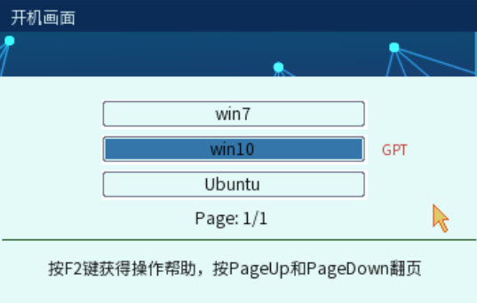 方法二: 如果没有以总管模式进入系统,而是直接按Enter进入安装了需要的软件后,想要永久写入保存进去的话,您可以重启在底层“选单界面”,按上下键将光标移到对应的系统上,按Ctrl B(永久写入模式),如下图,也可以保存上一次的操作数据,永久的保留在硬盘上。