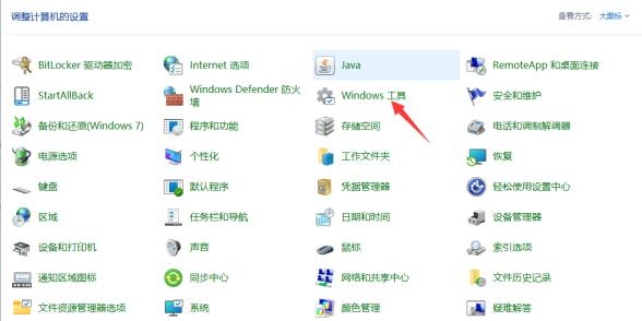 打开控制面板,点击windows工具进去,找到服务组件.