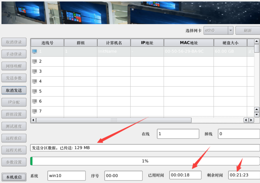 ④当所有机器都进来后,点击完成登陆,之后再开机使用pxe启动的机器无法加入本次数据传输