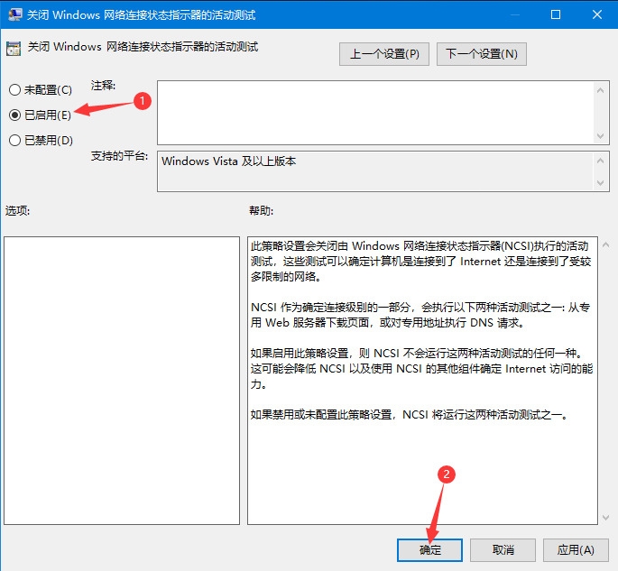 在弹出的配置框中,选择“已启用”,然后点“确定”.点击后重启生效.