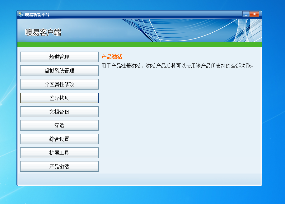 1.找一台样机作为发送端,开机,进入系统后按Ctrl L打开“噢易功能平台”功能界面,点击“差异拷贝”,(登录的默认用户名是sys,密码为空,如果设置了密码,就是底层F10的密码)进入上层差异拷贝功能界面,点击等待登录之后如下图: