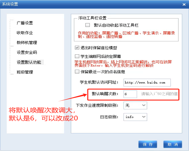 确认mac.cache文件没问题,但多媒体教师端还是无法唤醒学生机或者只能唤醒部分学生机,可以尝试将多媒体教师端中的唤醒次数增大,再看唤醒结果,操作步骤如下: