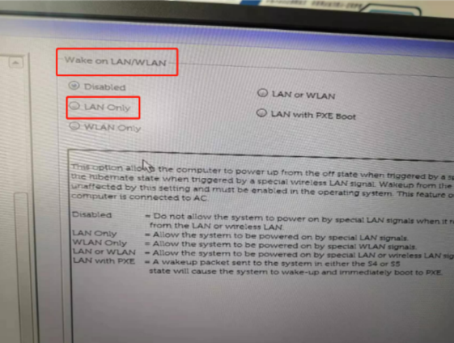 机房需要唤醒的机器主板BIOS设置中需要支持网络唤醒,且对应的设置需要打开,如果不知道机房机器是否支持网络唤醒或者不清楚如何打开允许网络唤醒的设置项,需要先联系硬件厂商进行确认,下附部分机器的BIOS唤醒设置图: