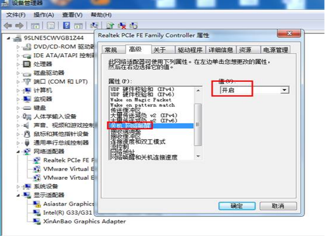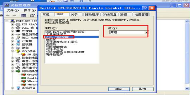 要支持唤醒,在系统下网卡属性高级里也必须开启"关机网络唤醒功能",这点非常重要,如下图: