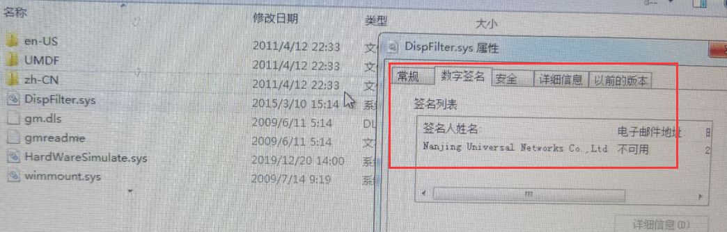 以该文件名经过搜索,发现在C:/Windows/SysWOW64/drivers/DispFilter.sys路径,查看该文件的数字签名,发现是某一款较为热门的多媒体软件广播组件导致,会影响机器的显卡组件相关.终端的系统如果显卡驱动未安装、安装报错、显卡无法正常使用,均可能会导致该文件引起蓝屏问题.
