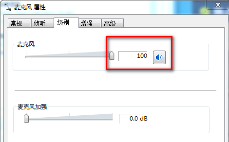 3. 有麦克风和立体声混音,插入设备后,请检查“麦克风”和“立体声混音”混音输入是否正常。敲击麦克风和本地播放音乐,看上图录制中“麦克风”和“立体声混音”输入是否有波动,有波动则正常,如果“麦克风”波动太小则右键点 击“麦 克风”切换到“级别”将麦克风音量调到100,如下图所示: