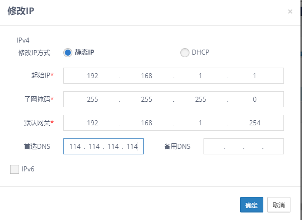 2、输入规划好的终端新的起始IP地址,完成后点击确定。