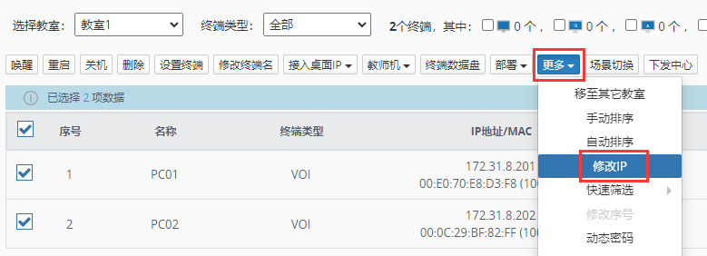 用户网络环境变更,需要批量修改教室终端的终端名和IP。