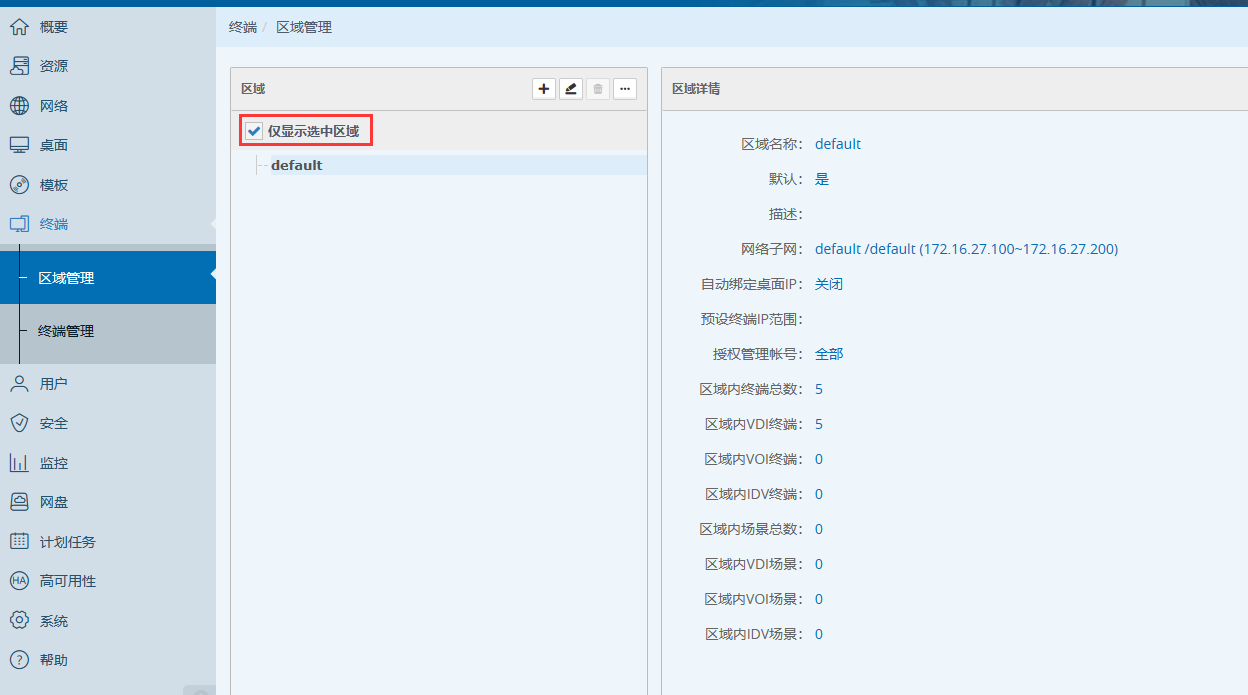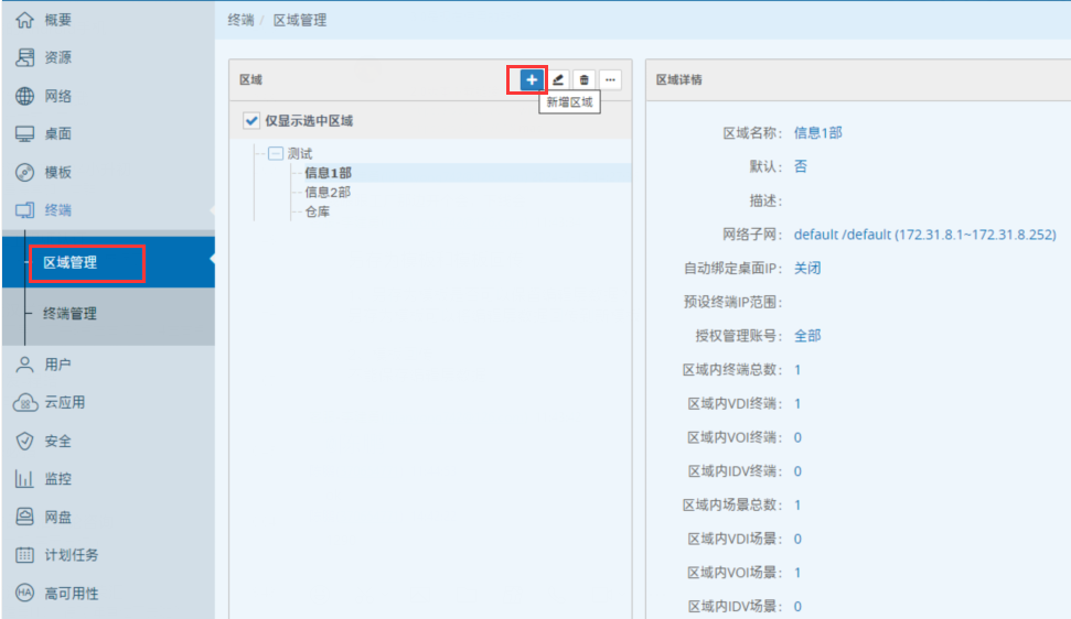 新项目建设,需要增加桌面云的应用范围,根据不同的范围设置区域的相关属性;