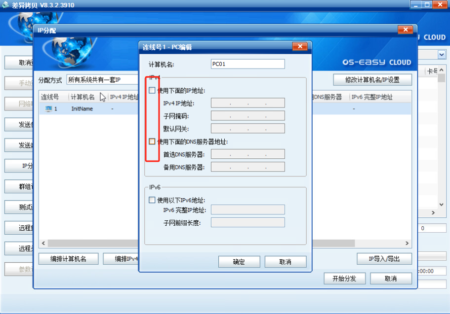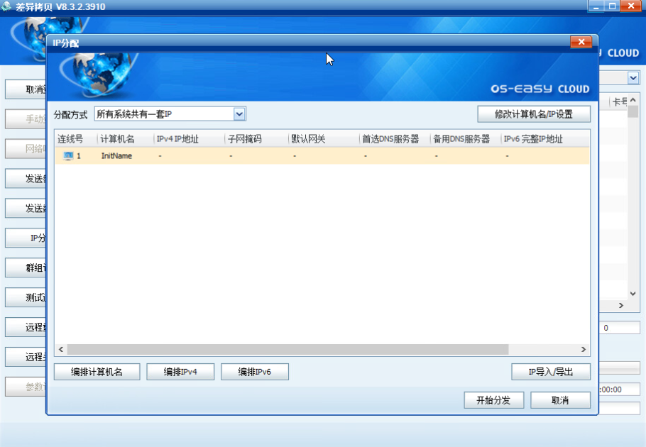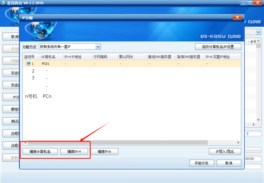 (5)依次点击编排计算机名和编排IPV4,确认无误后,点击--开始分发;