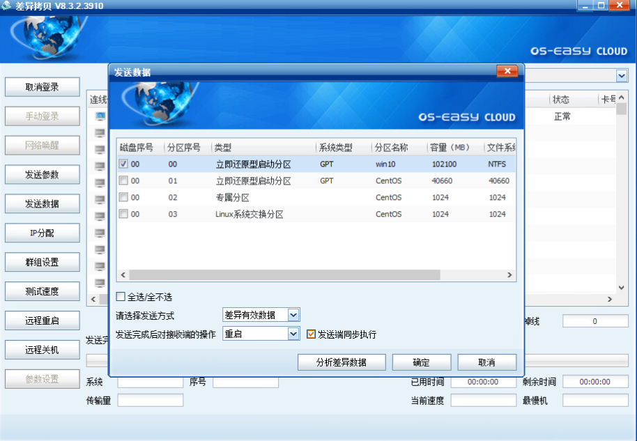 (6)退出到差异拷贝主界面,依次发送参数,发送数据完成后重启,至此设置dhcp的步骤完成。