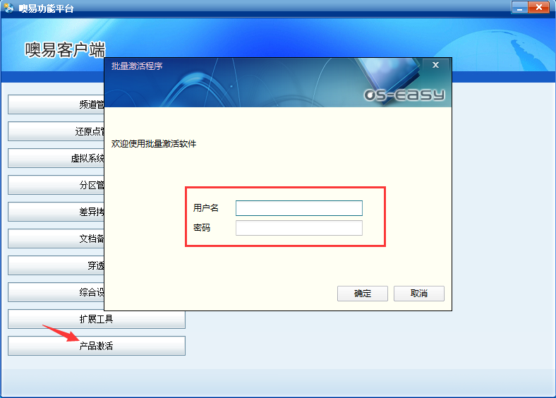 1.首先将所有需要激活的机器开机进入系统,再任意挑一台已进入系统的机器,在系统下按CTRL L键(或点击系统右下角的蓝色保护信息托盘)打开保护信息界面,点开“噢易功能平台” 后,打开“注册激活”或“产品激活”(如下几图),输入用户名 sys ,密码登录进去(密码默认是空白的,如果你在底层F10系统管理里有设置密码就输入密码)。