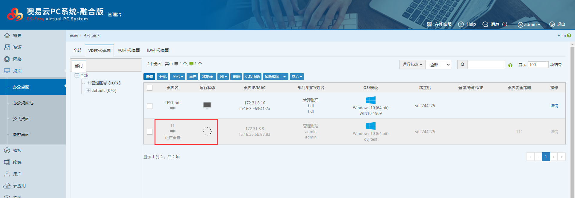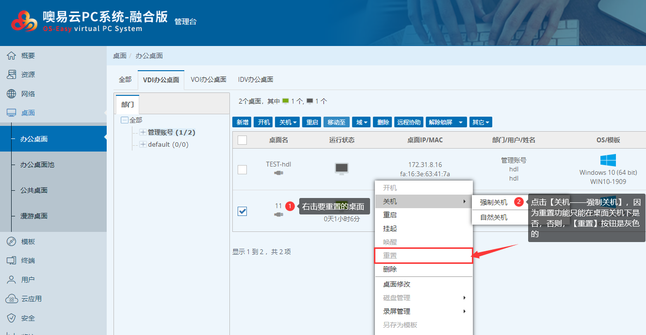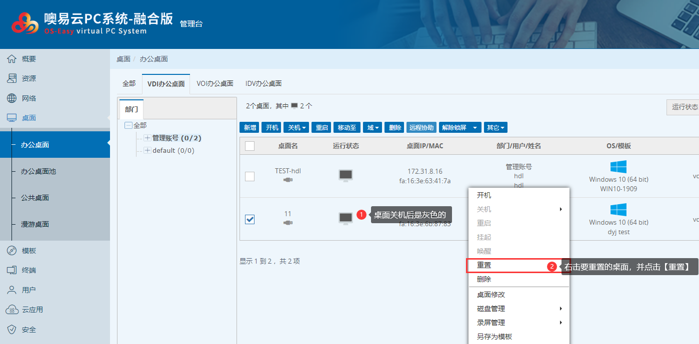 VDI办公桌面 | VDI办公桌面重置