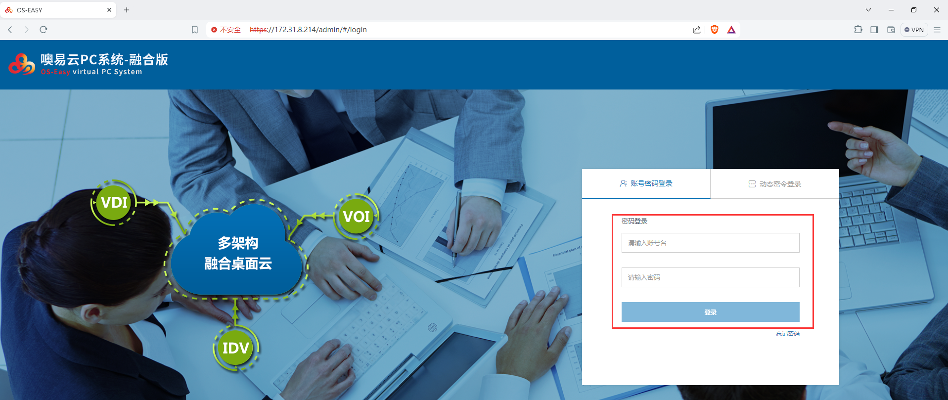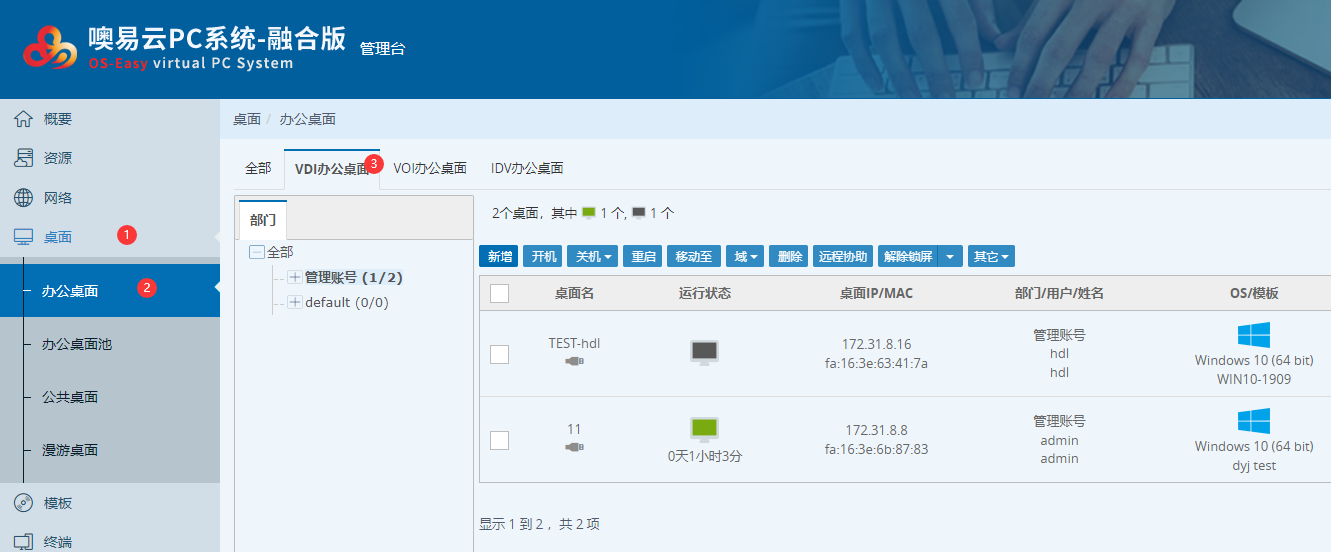3)登录云管理平台后,进入到【桌面——办公桌面——VDI办公桌面】界面