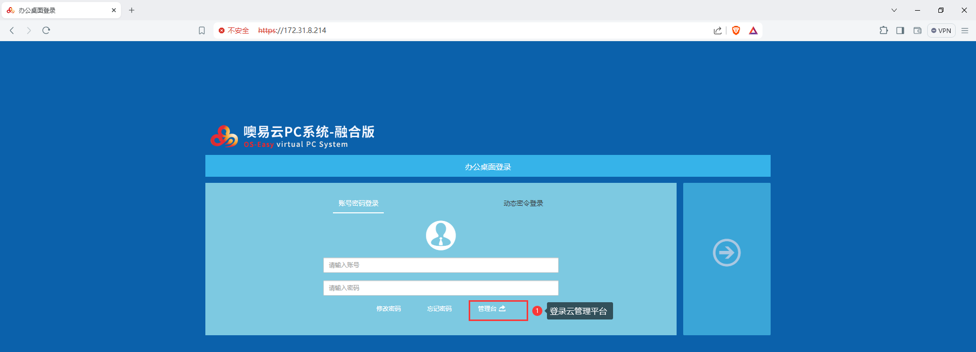 1)使用浏览器打开云管理平台,并点击【管理台】