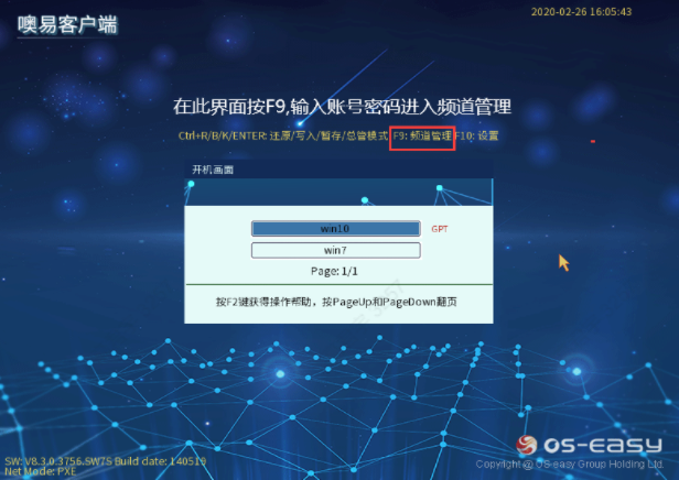 ① 开启后按esc键退回到系统选择菜单界面,然后按【F9】键,输入管理员账号和密码(默认账号为sys,密码为空),进入频道管理界面