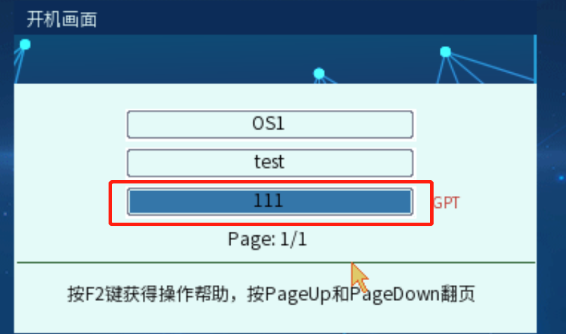 开机画面显示描述信息:勾选后,描述信息会显示再开机选单界面