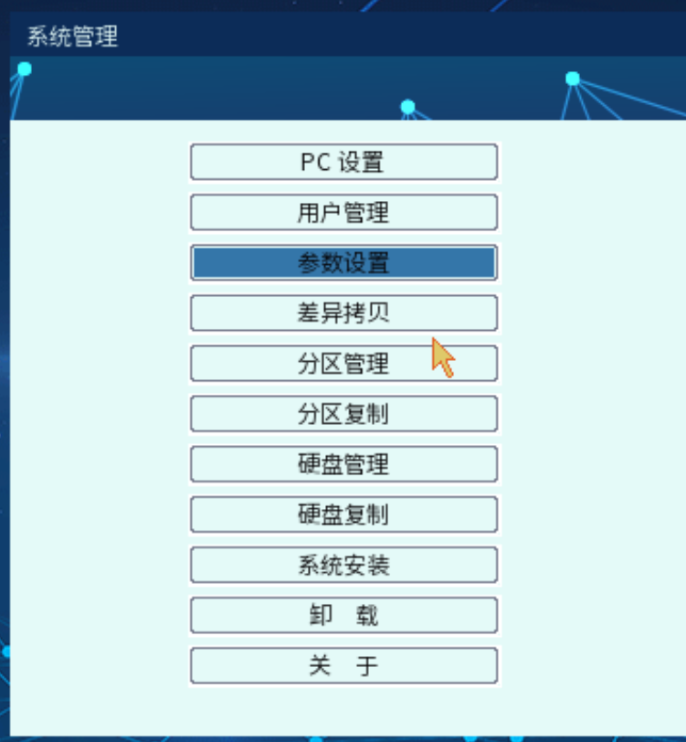 ① 底层进入:开机后在OSS底层系统选择界面,按【F10】键,输入管理员账号和密码(默认账号为sys,密码为空),然后选到【差异拷贝】,按回车进入。