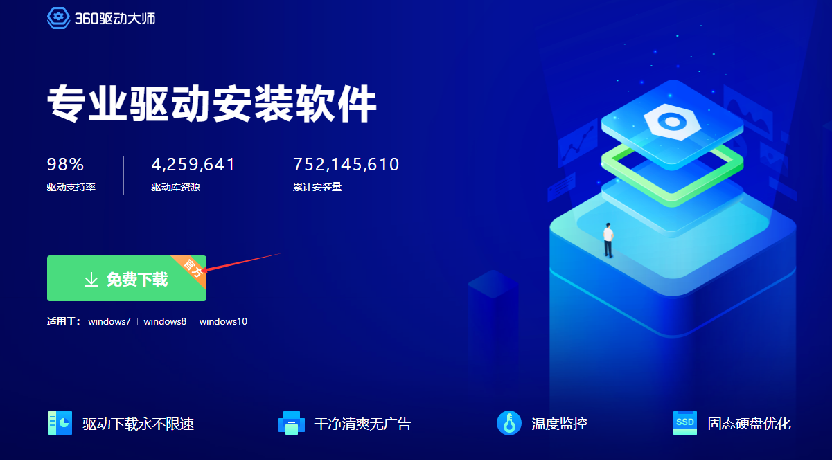 注意:360驱动大师为商业软件,可能会有捆绑或弹框出现,安装时候注意选项.第三方软件安装驱动可能未知的兼容性问题,与本公司无关.